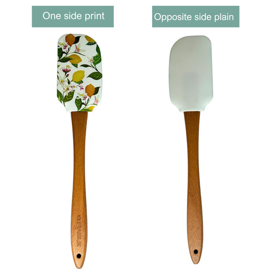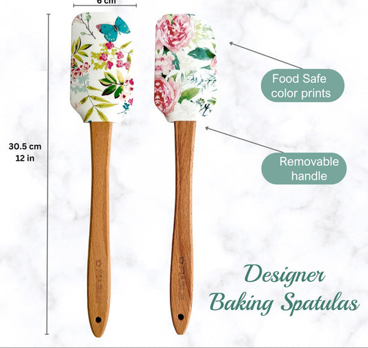 Designer Printed Silicone Spatula Set – Baking Utensil – Food Grade Silicone & Wood – Pack of 2