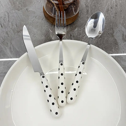 4-Piece Polka Dot Design Stainless Steel Cutlery Set - Ceramic Handle - Dinnerware
