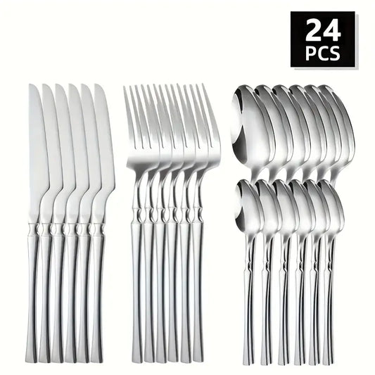 24PC Western Cutlery Set – Polished Stainless Steel Flatware for Events