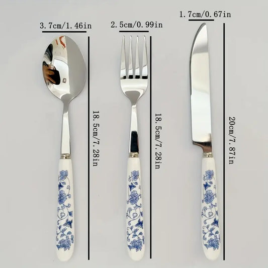 Blue Floral Porcelain Silverware Set (18pc) - Dining, Parties