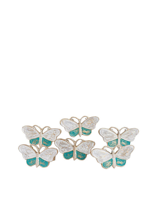 Textured Butterfly Napkin Ring – Stainless Steel – White & Blue Design