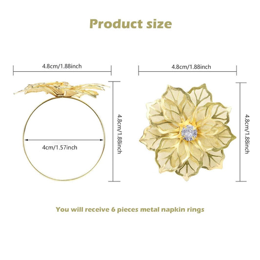 Gold Floral Napkin Rings – Table Setting Accessory – Intricate Floral Design – Set of 6