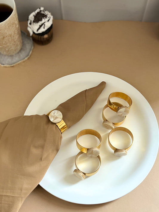 White & Printed Napkin Rings – Tabletop Decor – Wood & Agate – Set of 6