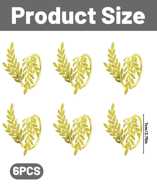 Golden Leaf Napkin Rings – Tabletop Accessory – Durable Golden Metal – Set of 6