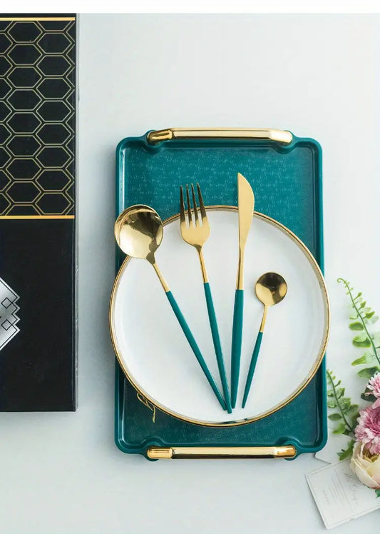 24PCS Stainless Steel Cutlery Set, Knife, Fork, Spoon, Luxury Cutlery Set