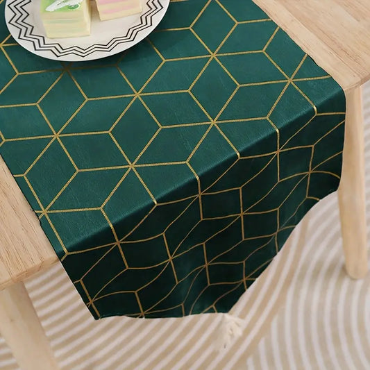 1pc Green Prismatic Gilded Table Runner With Tassel