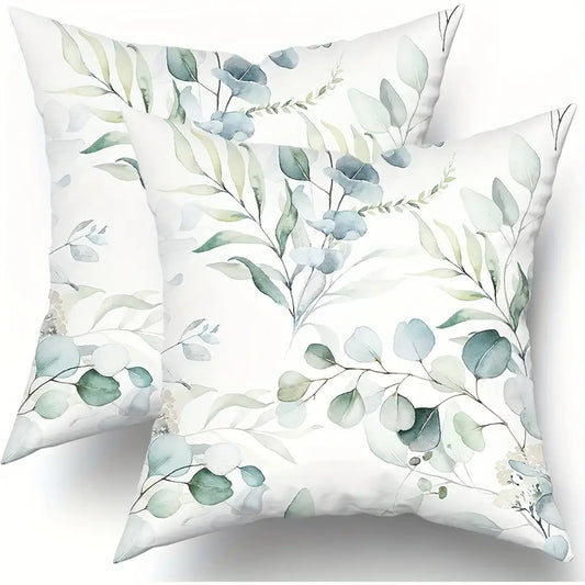 2-Pack Modern Sage Green Eucalyptus Leaf Pillow Covers, Watercolor Floral Design