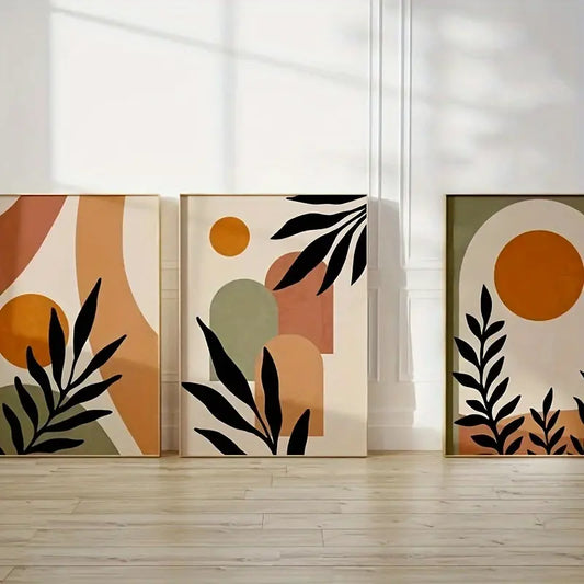 3pcs Boho Abstract Wall Art Beige Green Terracotta For Home Bedroom Wall Decor