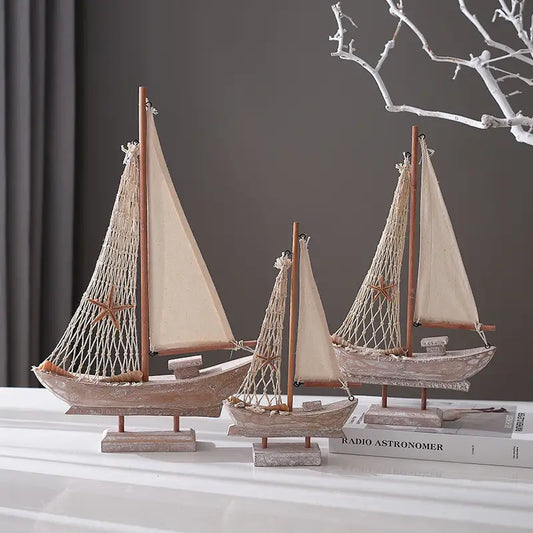 Wooden Sailboat Decor - Vintage Nautical Accent Piece
