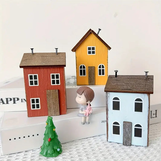 Miniature Wooden House Ornament - DIY Cabin Model Home Decor