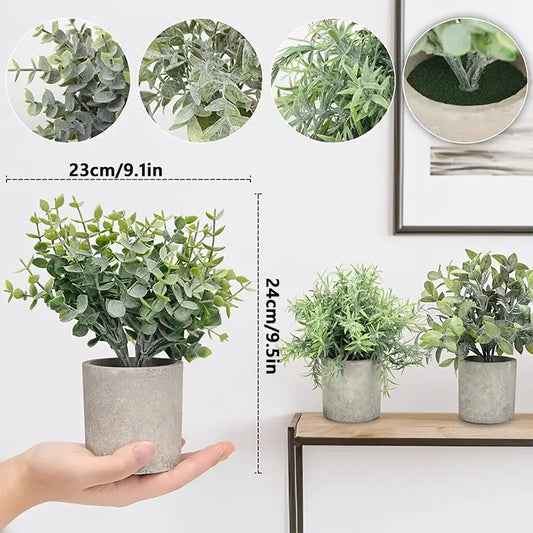 Artificial Eucalyptus Potted Plants Set - Small Faux Decor