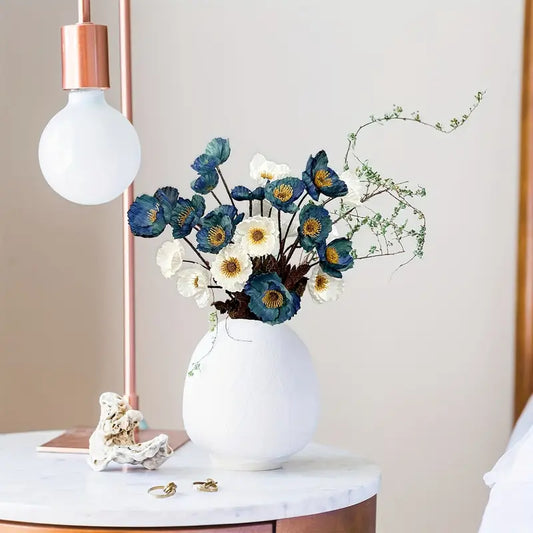 Blue & White Poppy Bouquet - Wedding Home Decor Centerpiece