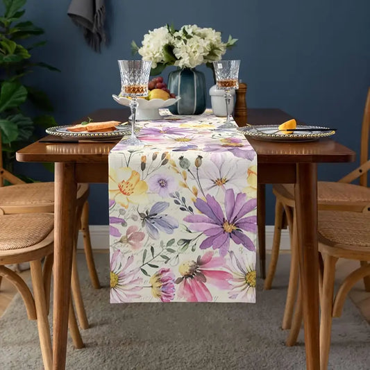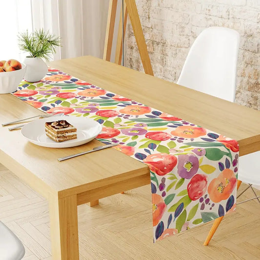 Watercolor Linen Table Runner – Elegant Floral Dining Decor, Various Sizes