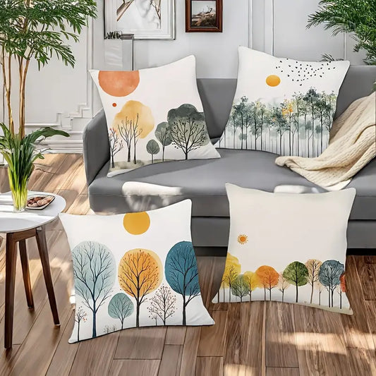 Watercolor Tree Sun Cushion Covers - 18x18 Pillow Cases - 4 Pack
