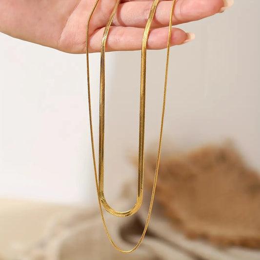 Women's Double Layered Necklace - Golden-Toned Stainless Steel, Sleek Chain Design