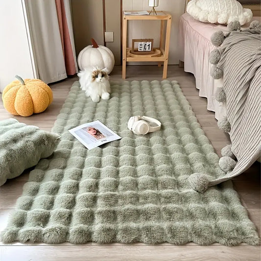 Luxurious Matcha Green Bubble Velvet Area Mat - Ultra-Soft, Plush