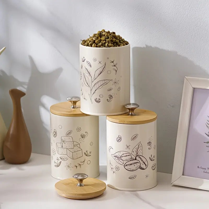 3pcs Airtight Food Storage Containers with Flip-Top Lids - Leakproof, Moistureproof, Stackable Kitchen Canisters - Heavy-Duty Iron Construction for Pantry, Kitchen, Office, Camping - Ideal for Coffee, Grains, Flour, Rice, Spices, Sugar - Space-Saving Design, Pantry Organizers And Storage, Versatile Container Use, Decorative Lid Design, Durable Container Material