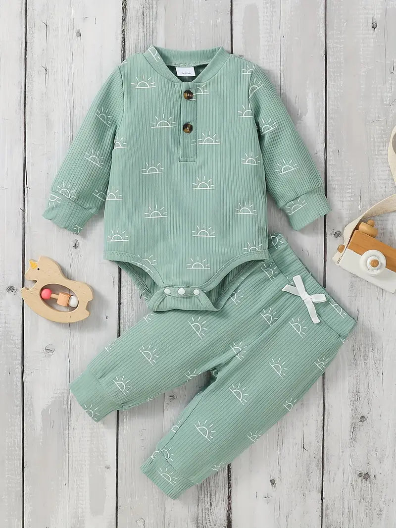 Baby Cartoon Sun Print Bodysuit & Pants Set | Soft & Stylish Infant Outfit