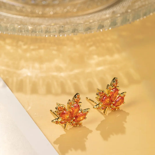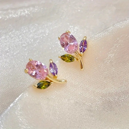 Boucles d'oreilles à tige en zircone rouge plaqué or 14 carats pour femme