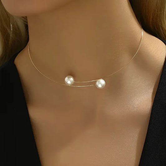 Collier élégant en perles d'imitation - Alliage de zinc au design baroque