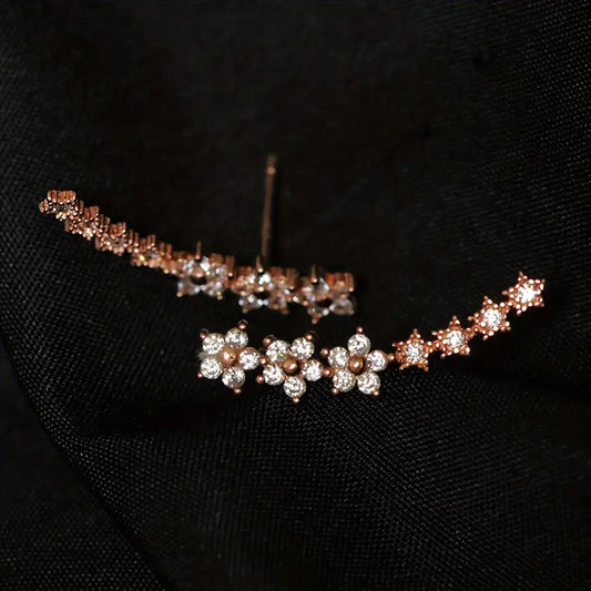 Boucles d'oreilles grimpantes étoiles et petites fleurs - Boucles d'oreilles scintillantes avec strass