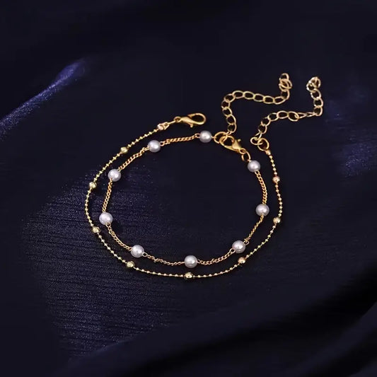 Ensemble de 2 bracelets empilables rétro élégants avec perles d'imitation