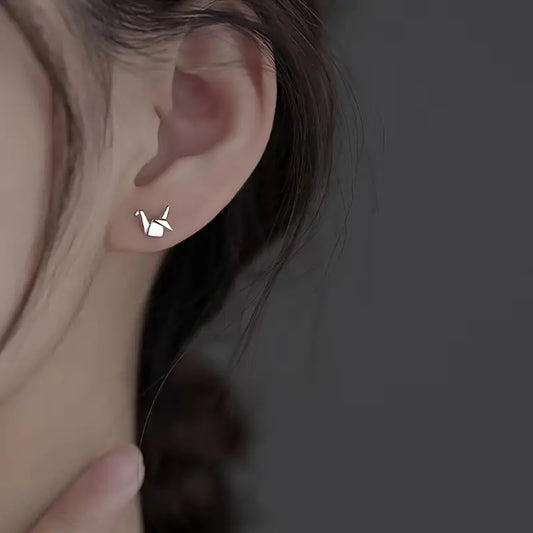 Boucles d'oreilles à tige en forme de grue plaquées argent de style minimaliste