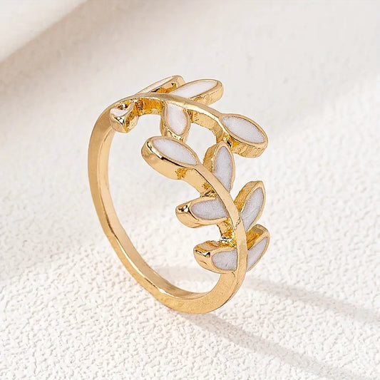 Bague élégante en alliage de zinc avec motif feuille et blé pour femme
