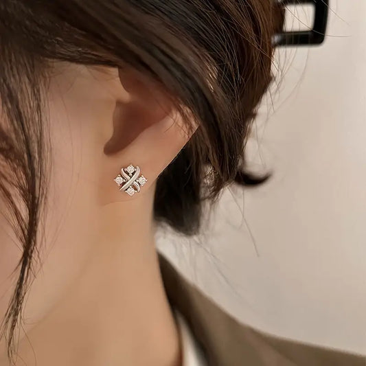 1 paire de boucles d'oreilles à tige légères et luxueuses en forme de croix avec lettre X pour femme
