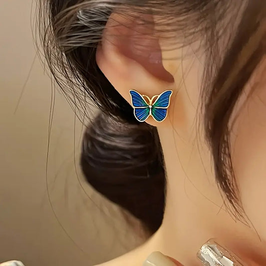 Ink Green Glazed Butterfly Stud Earrings 18K Gold Plated