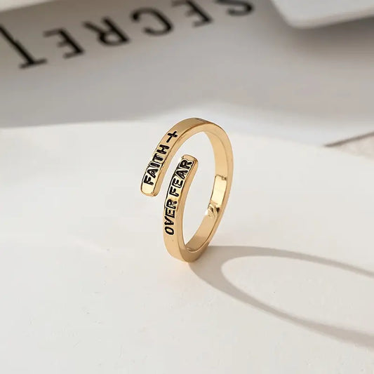 Inspirational "Faith" Cross Engraved Women's Adjustable Ring