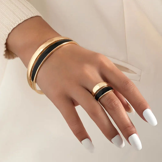 1 Pc Ring and 1 Pc Bracelet Jewelry Set With Colorful Enamel Design