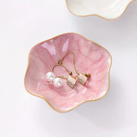 Plat à bijoux en céramique florale – Plateau de courtoisie élégant pour accessoires et décoration intérieure