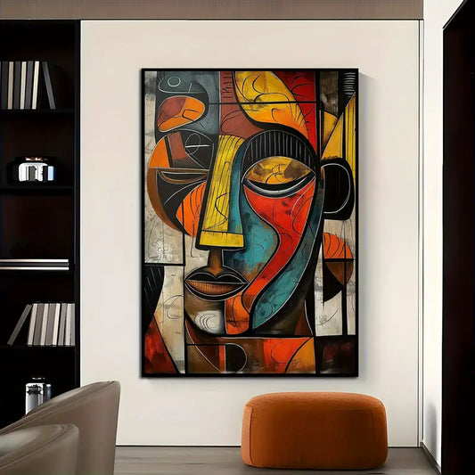 Peinture abstraite à l'encre rétro sur toile – Décoration murale représentant un visage africain pour chambre et salon