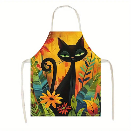 Tablier de cuisine en lin à motif chaton, facile à nettoyer et à ranger