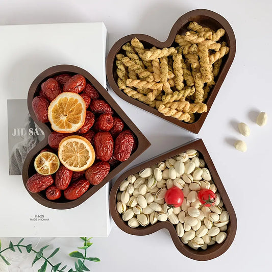 Plateau de service rustique en bois en forme de cœur, plateau empilable pour fruits secs et noix, 1 ou 4 pièces