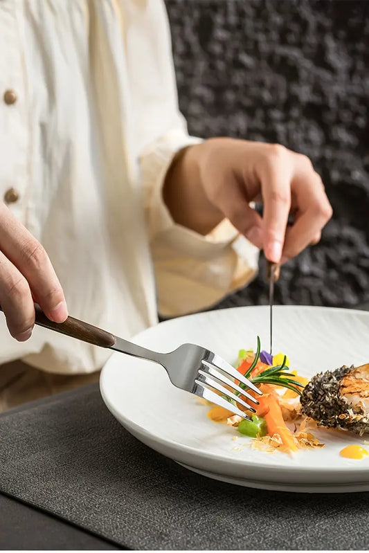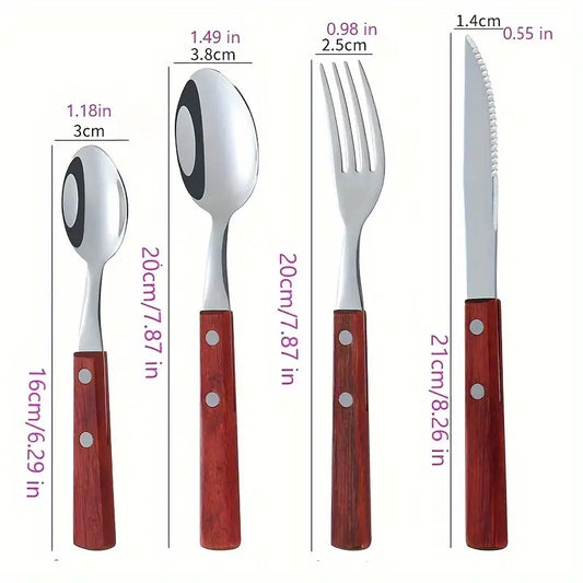 Ménagère 16 pièces en acier inoxydable avec manche en bois imitation fleur de poirier