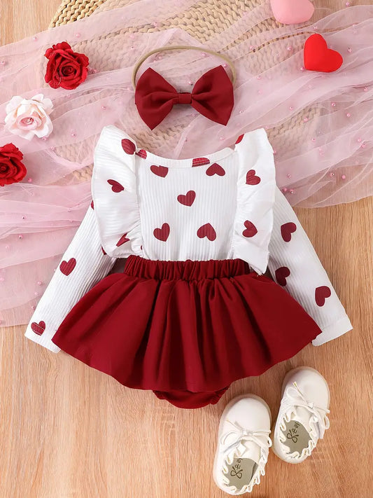 Ensemble combinaison et bandeau pour bébé fille à imprimé cœurs | Tenue douillette pour le printemps et l'automne