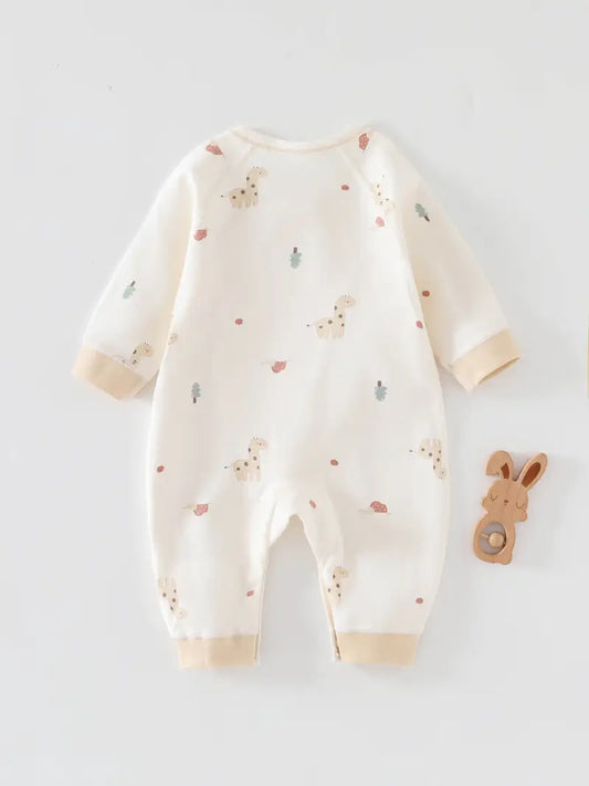 Grenouillère en coton motif cerf | Body doux à manches longues et boutons pour nouveau-né