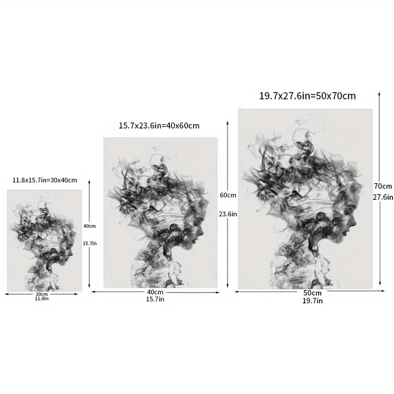 1 affiche sur toile représentant une figure abstraite (50 x 70 cm) – Art moderne à l'encre pour salon et bureau