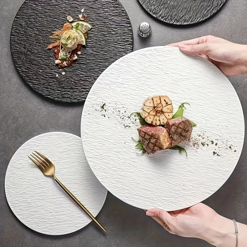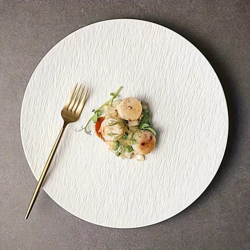 1PC Elegant Ceramic Steak Plate - Textured Round Flat Dinner Plate for Home & Hotel Use - Durable White Serving Platter