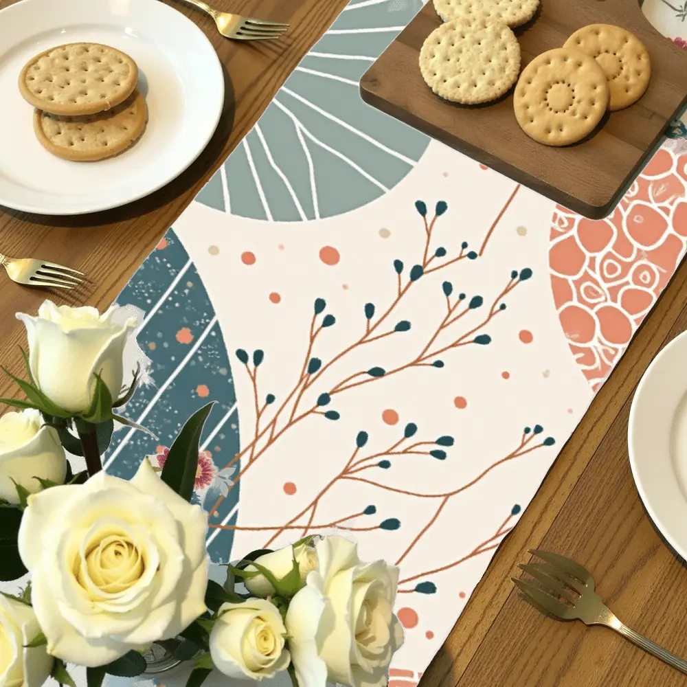 Chemin de table à motif de feuilles d'inspiration nordique, 1 pièce
