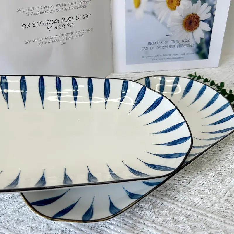 2PCS Rectangular Ceramic Fish Plates – Modern Fruit Trays, Microwave Safe