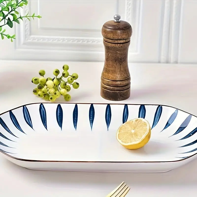 2PCS Rectangular Ceramic Fish Plates - Polished Fruit Serving Trays, Dishwasher & Microwave Safe - Modern Kitchen Tableware Set