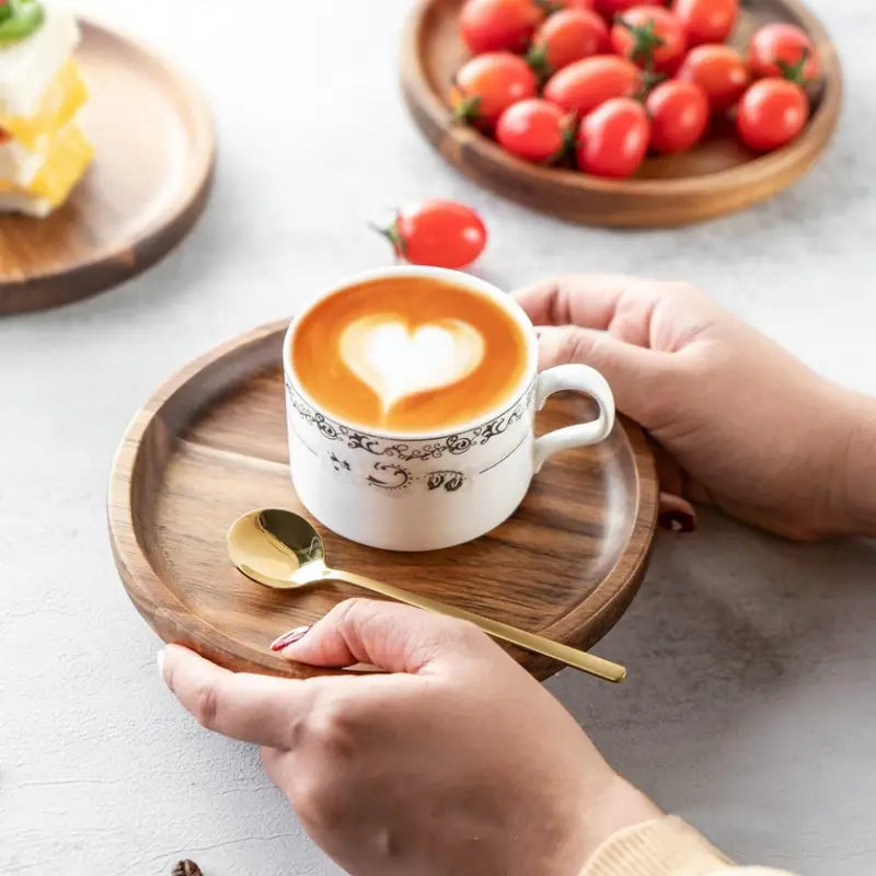 Lot de 2 plateaux de service ronds en bois – Légers. Matériau : bois. Référence : TG622329.