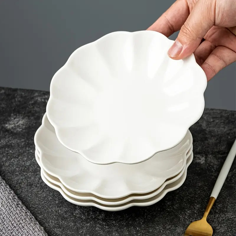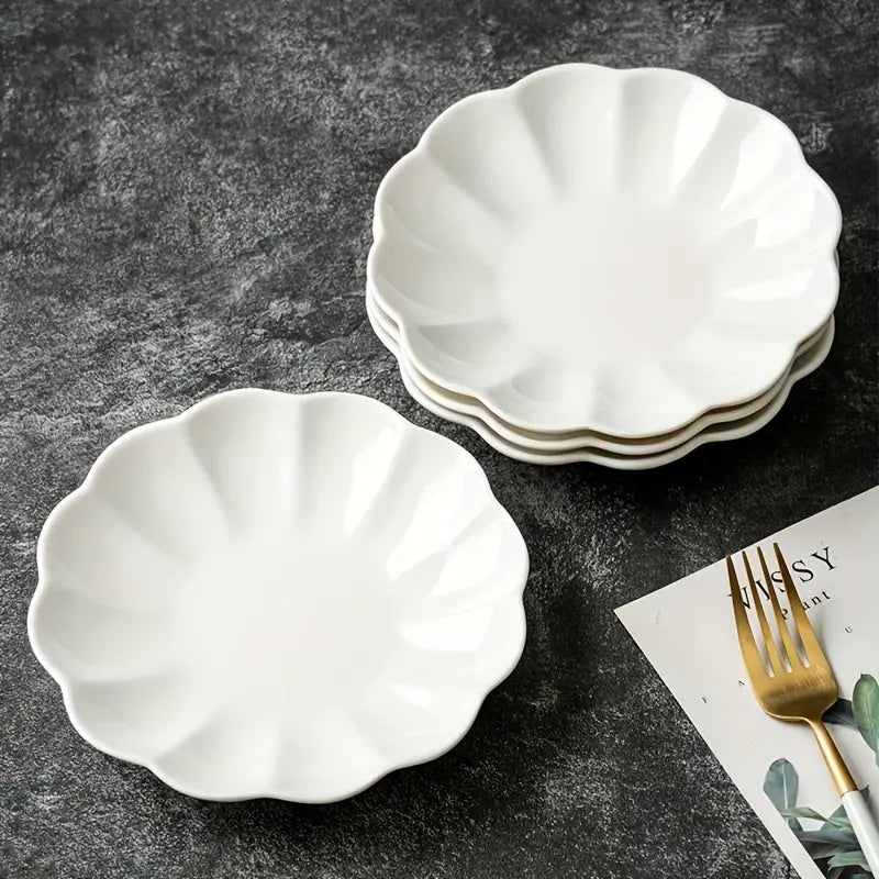 4PCS Orchid-Shaped Ceramic Dipping Dishes - 6-Inch Heat-Resistant Plates for Soy Sauce, Vinegar, Appetizers - Sushi Bar Tableware