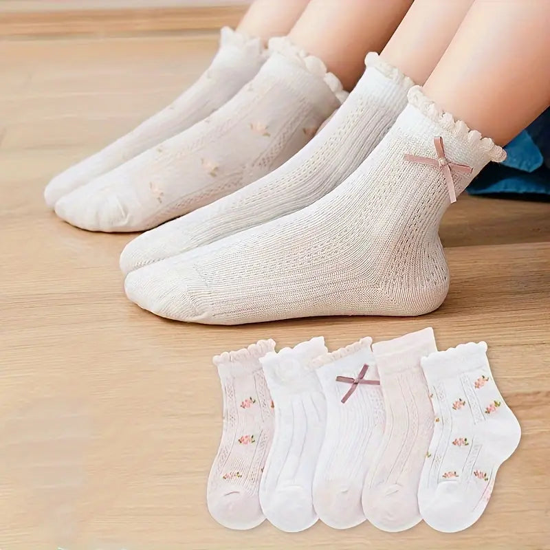 5 paires de chaussettes à nœud papillon | Chaussettes mi-mollet respirantes en maille pour filles