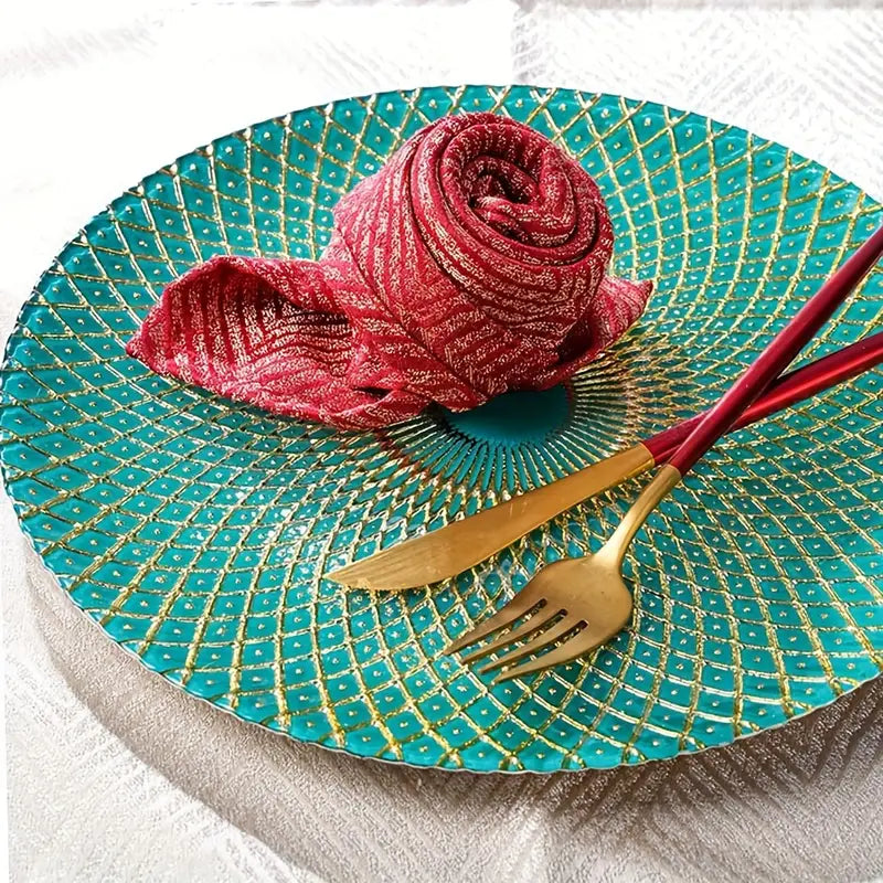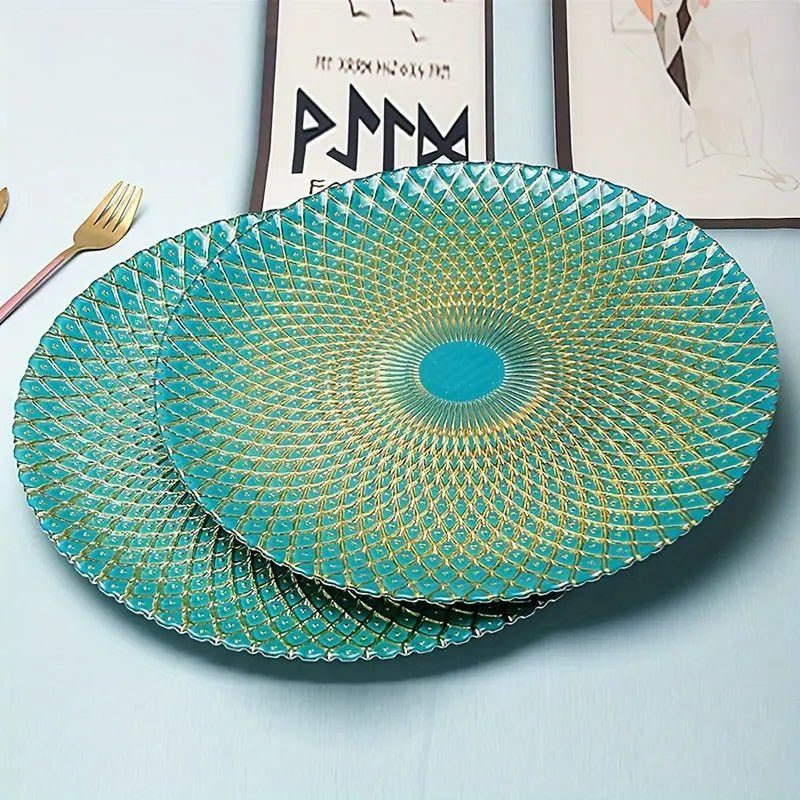 8-Inch Electroplated Glass Plate - Elegant Round Patterned Salad & Dessert Dish - Luxurious Tableware for Home & Restaurant Use