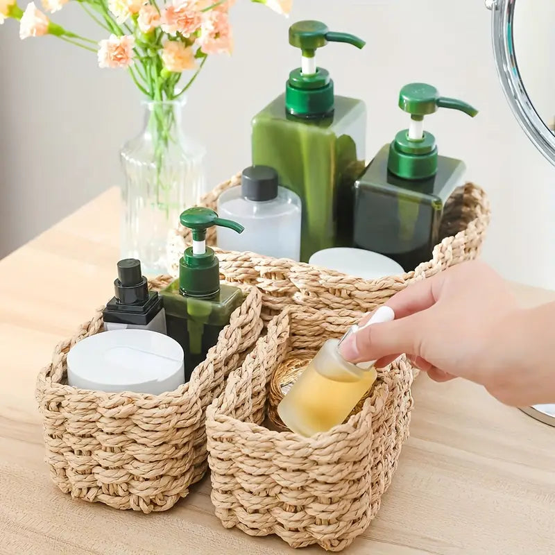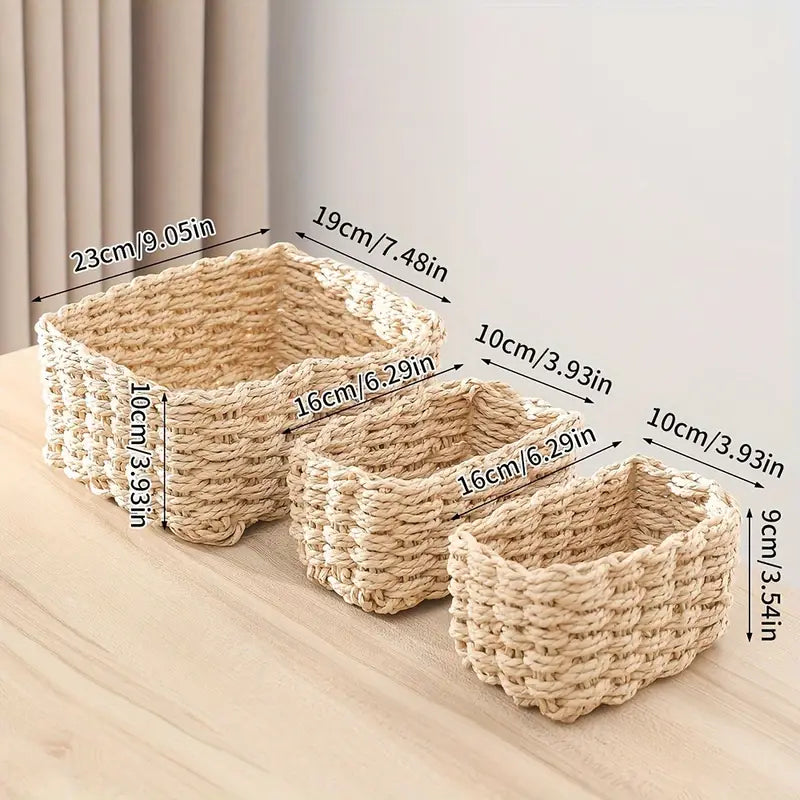 3Pcs Boho Style Woven Storage Basket Set Multifunctional For Toys Clothes Office Supplies Home Bathroom Indoor Use Shelf Baskets