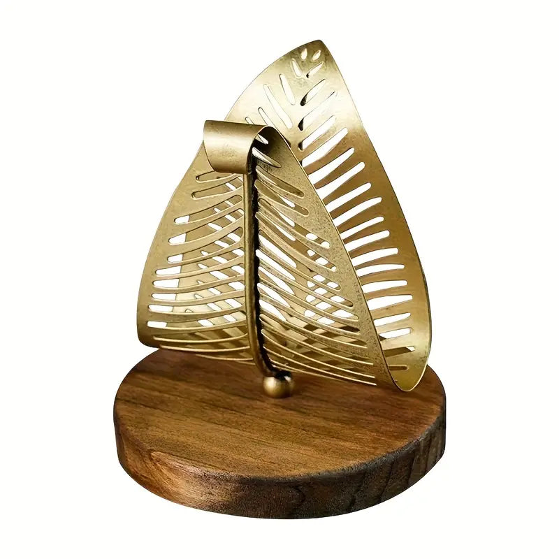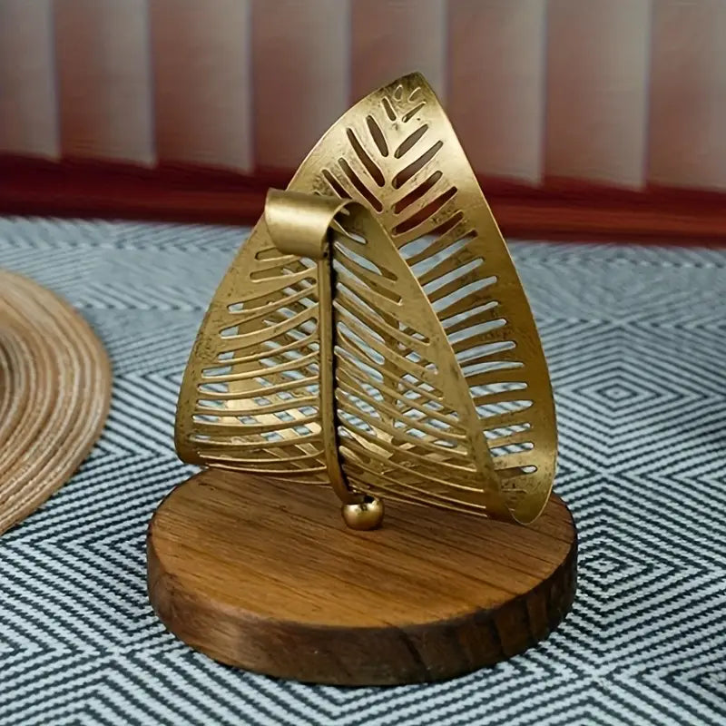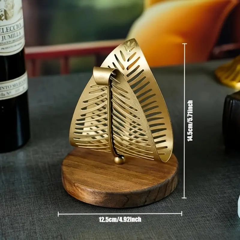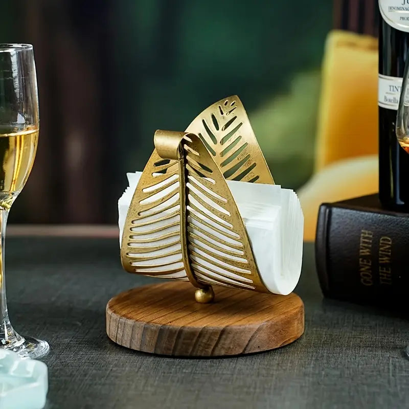 1pc Elegant Golden Leaf-Shaped Napkin Holder - Durable Iron, Stylish Brown Tabletop Decor for Home, Hotel & Restaurant Use, Creative and Durable Design, Napkin Holder for Table